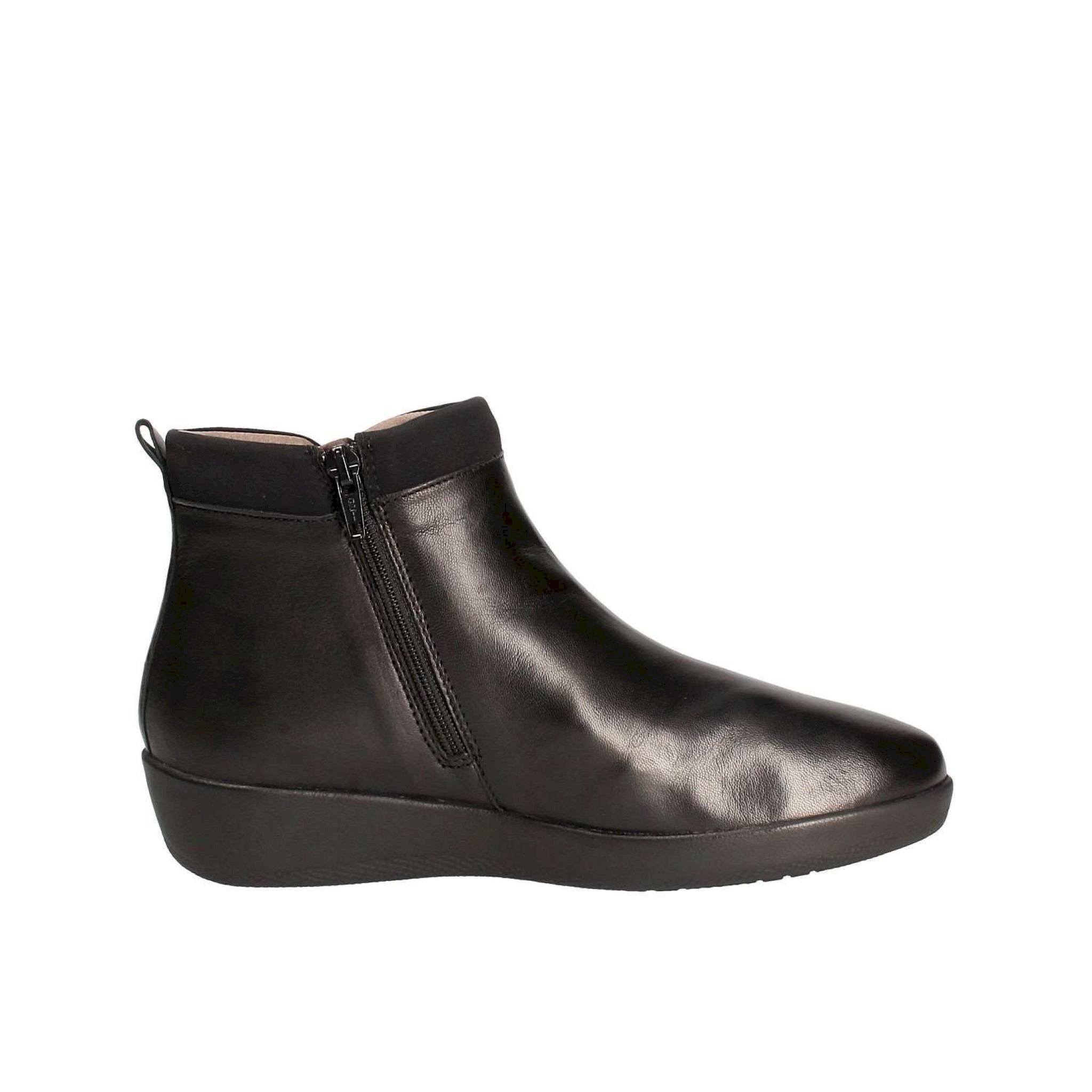 Stivaletto con zeppa in pelle con cerniera
