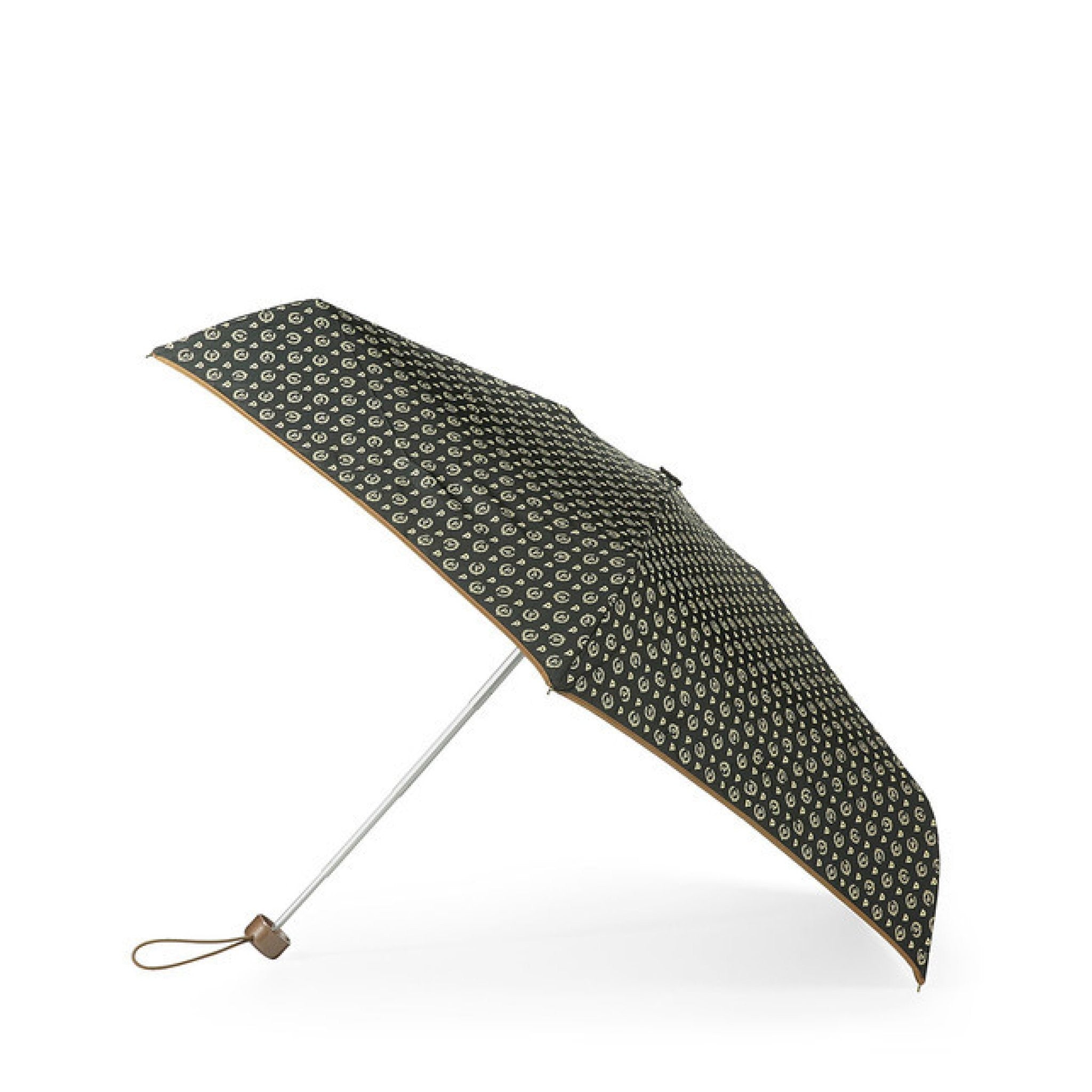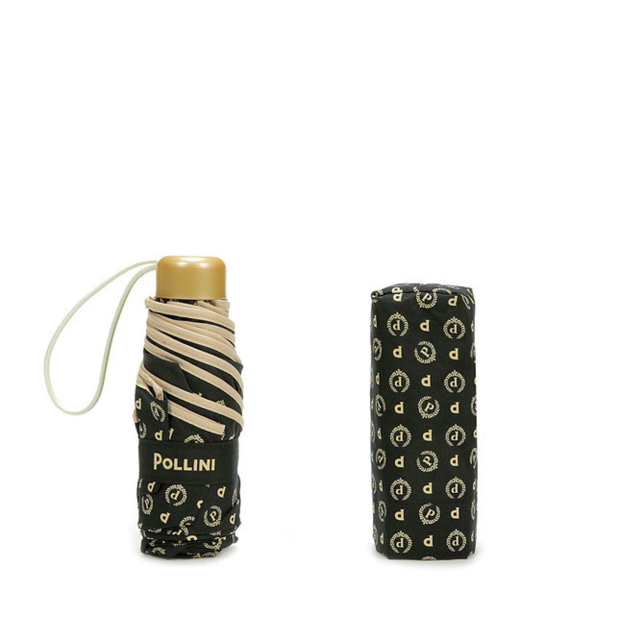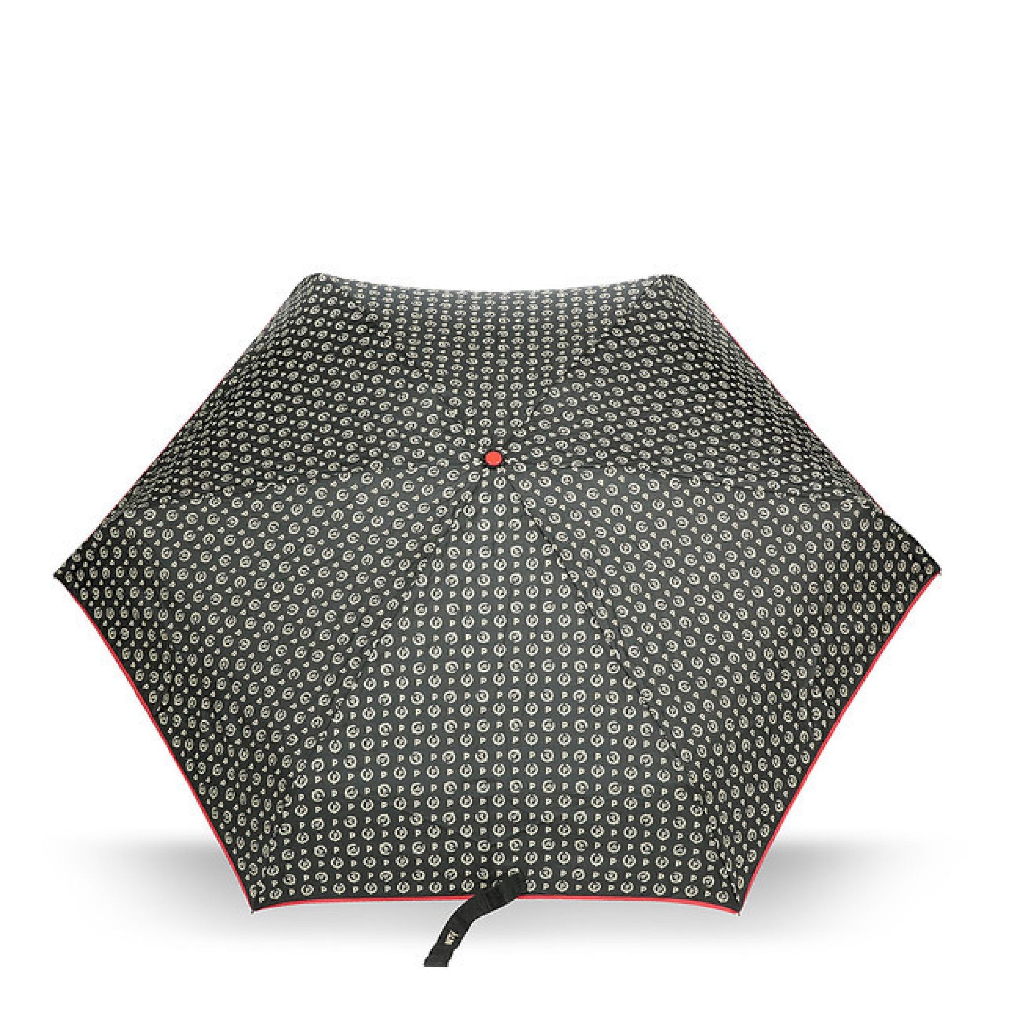 Ombrello richiudibile compatto stampa iconica all-over, profilato con contraasto di colore.