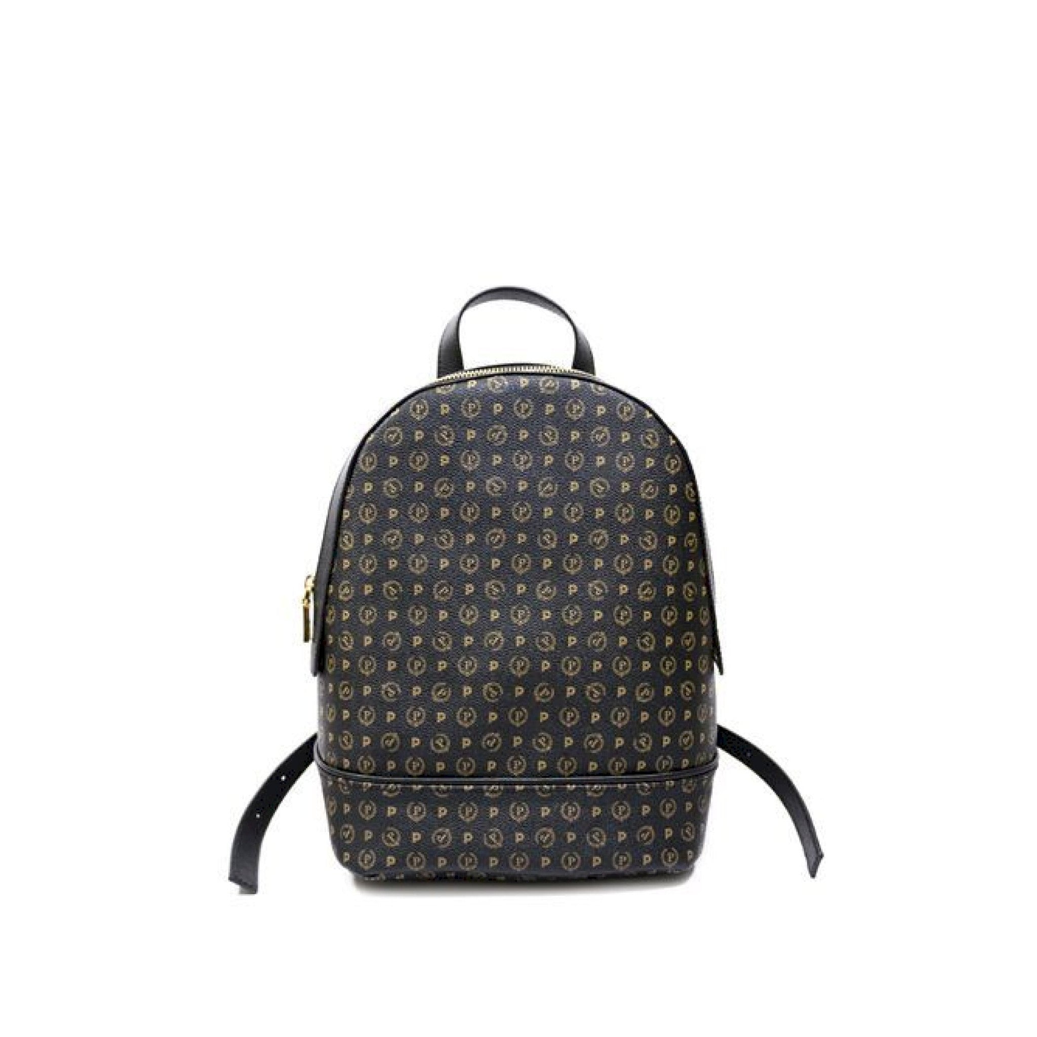 Zaino in ecopelle stampa all over con dettagli in pelle chiusura con zip manici in tessuto fodera interna con tasche metalleria oro 10/22 x 28,5 x 13 cm