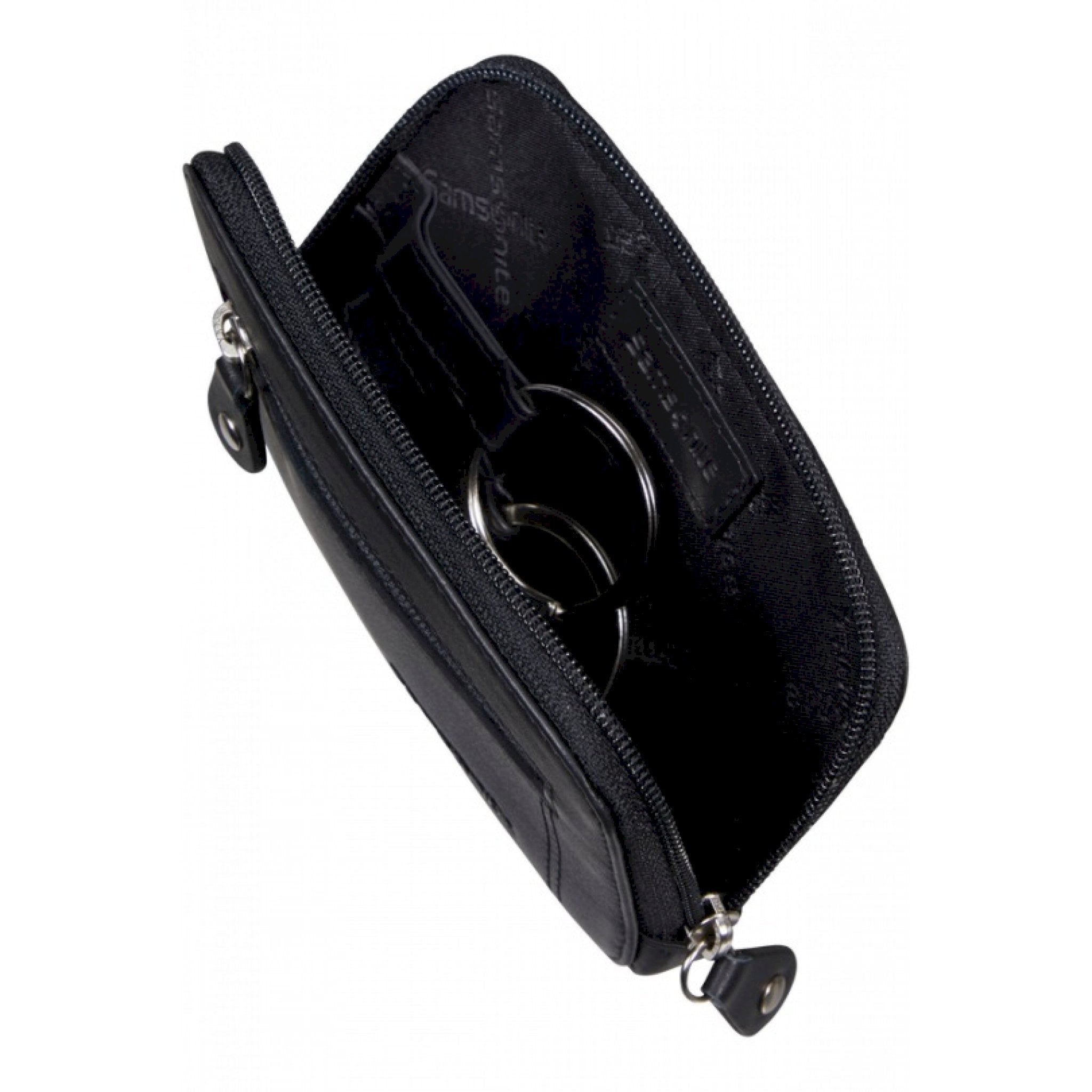 Bellissima custodia per chiavi del marchio samsonite. la custodia è dotata di diversi ganci per il fissaggio delle chiavi e di uno scomparto con cerniera sul retro. il compagno perfetto per molte occasioni.
