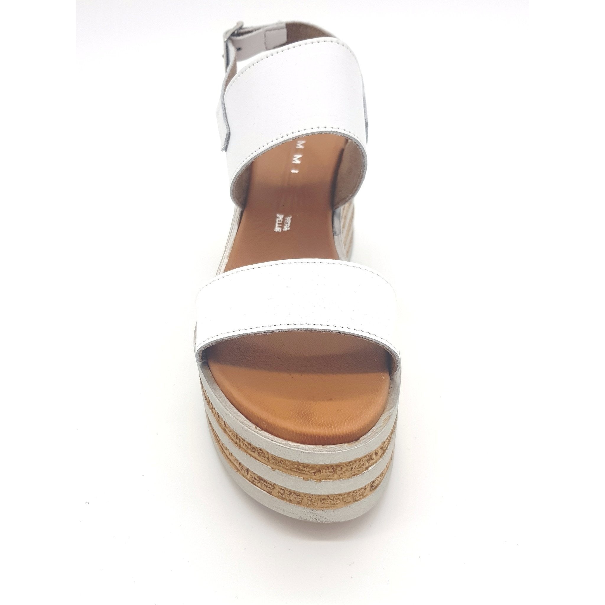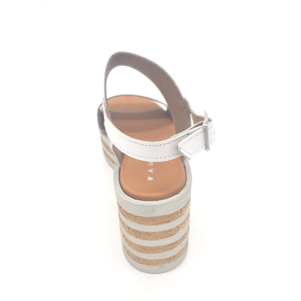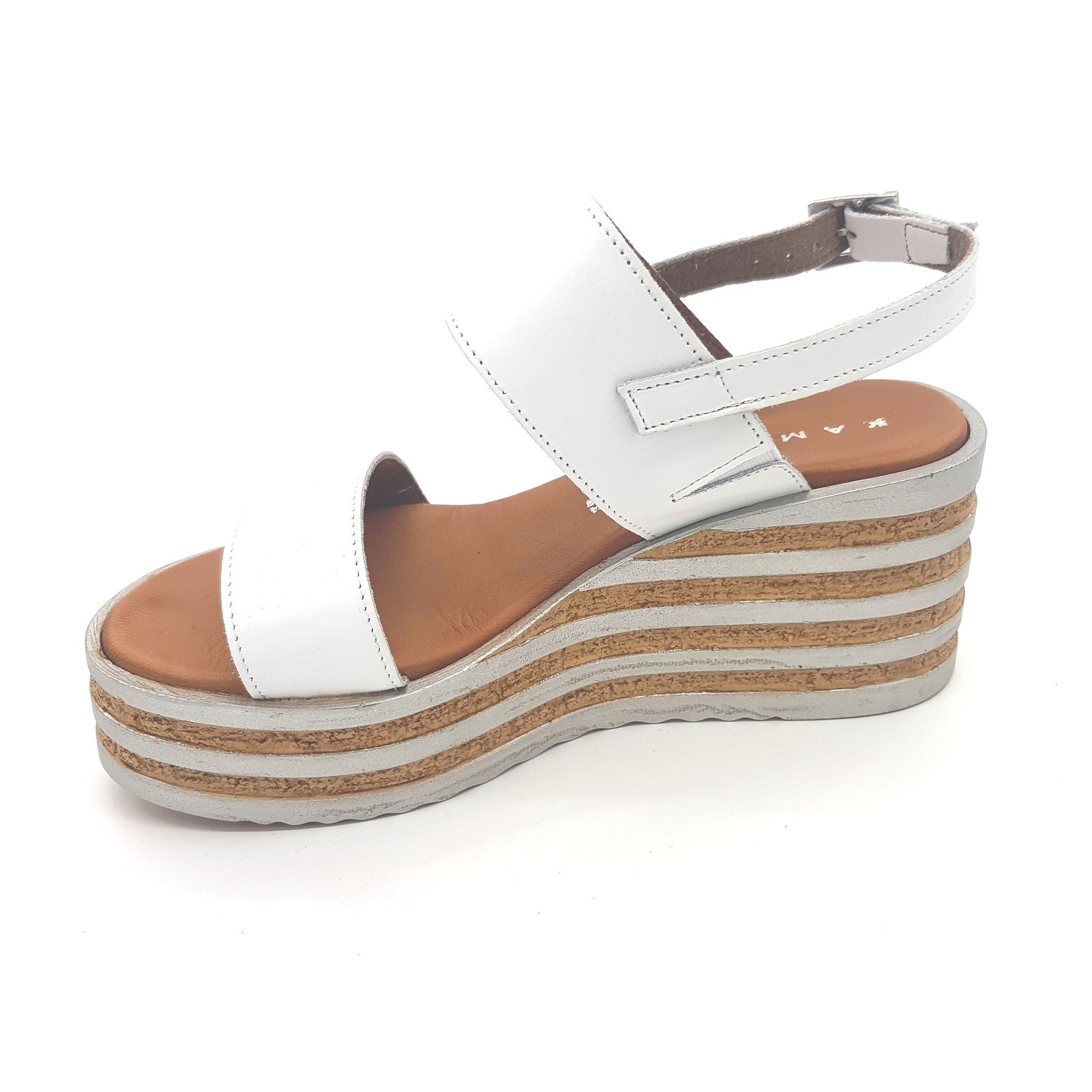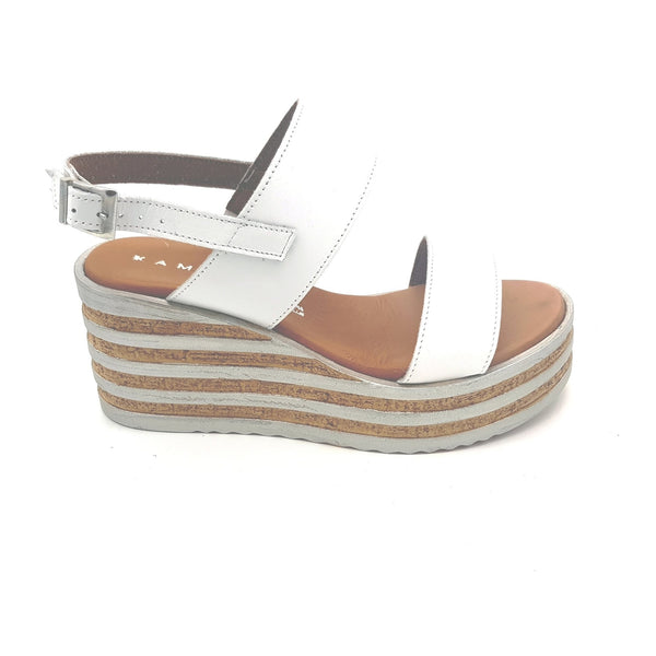 Sandalo con zeppa bicolore cm.8 in pelle