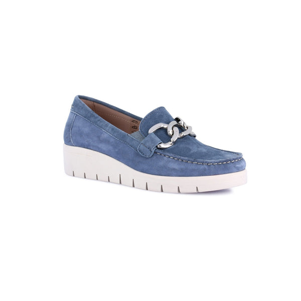 Mocassino da donna realizzato con pellami premium, per un comfort assoluto. la suola, con zeppa media, si adatta alla camminata grazie al brevetto grünland conforma.