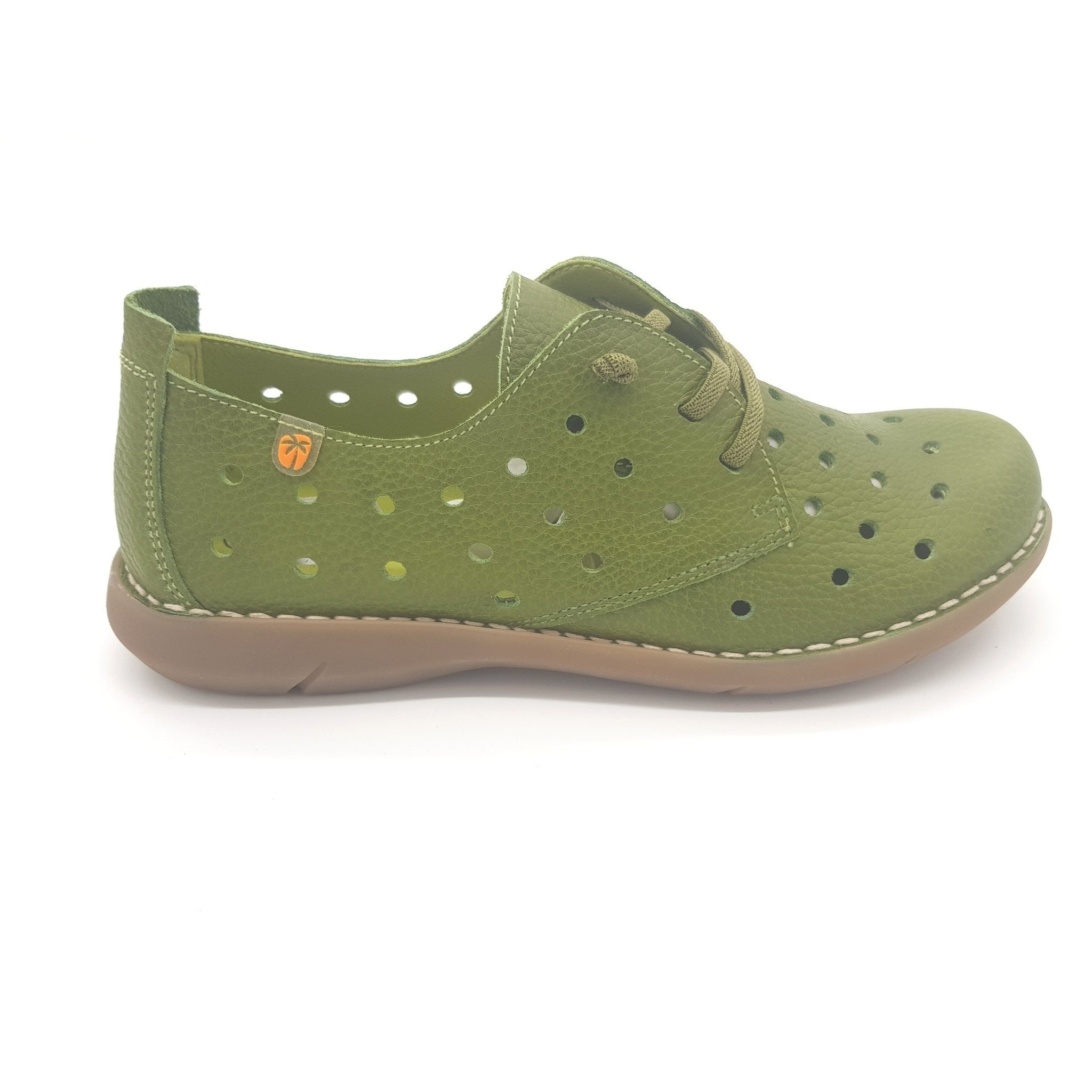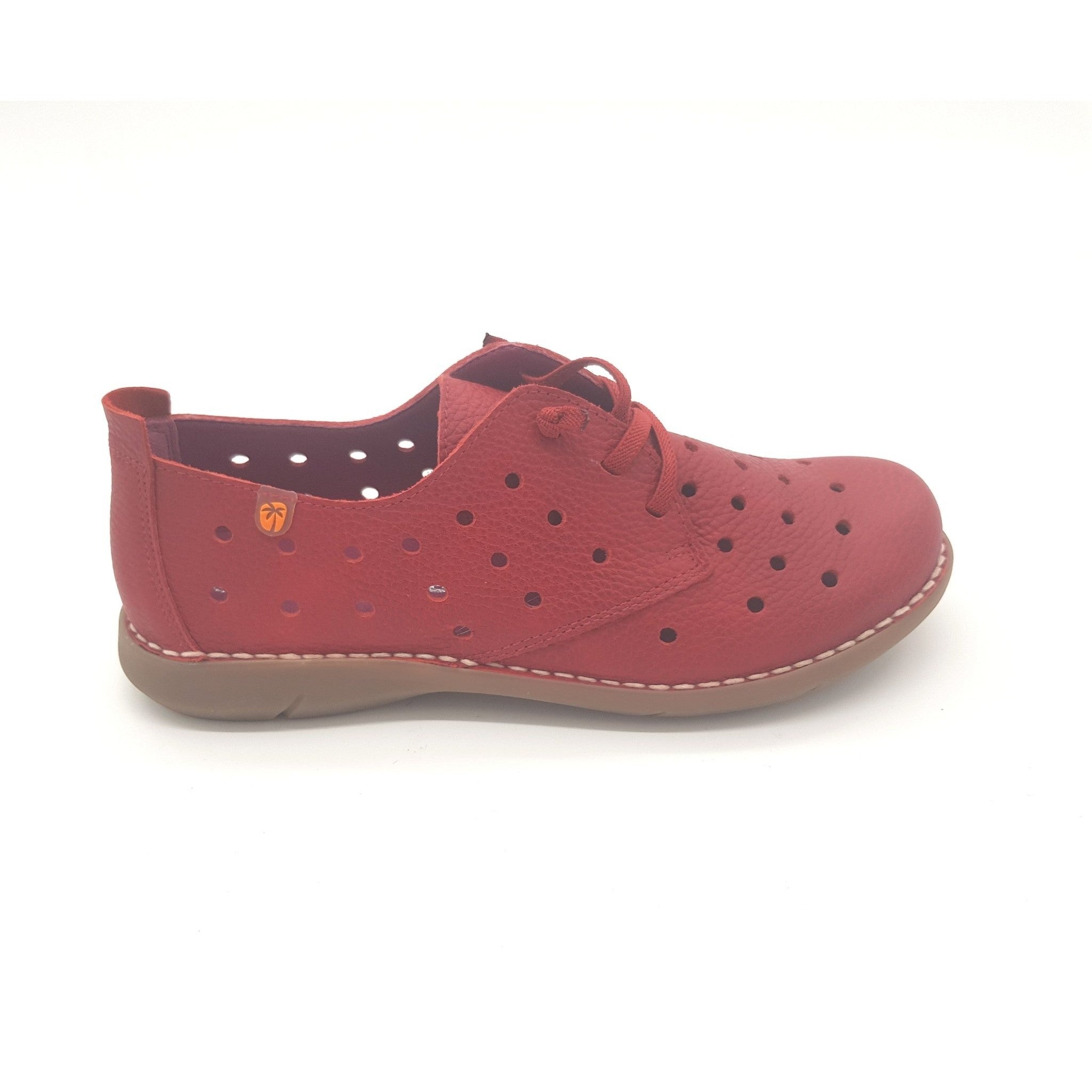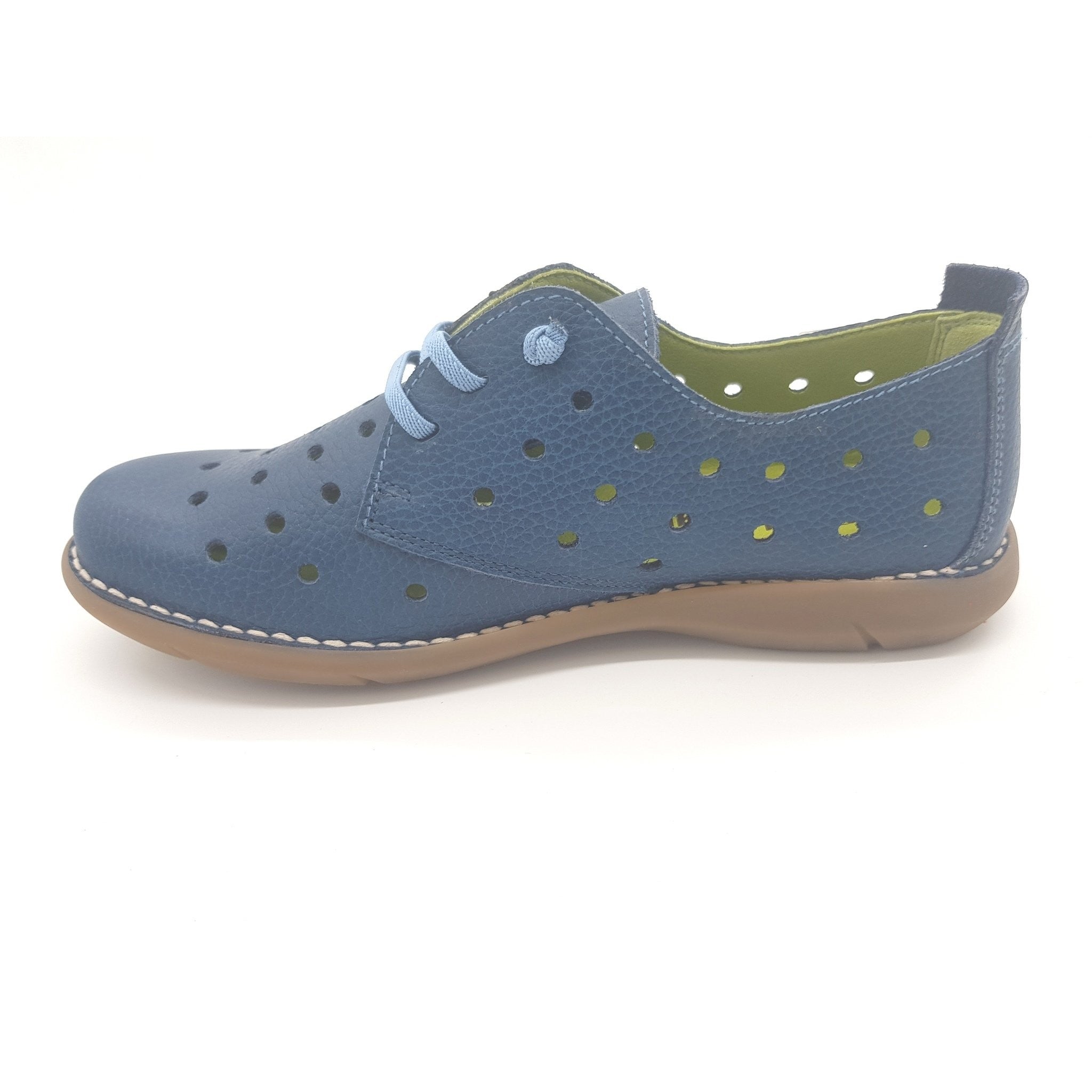 la foratura della tomaia è divertente e migliora la traspirabilità di questo derby cittadino, il fondo in gomma è morbido e piacevole, il plantare è estraibile e consente l’utilizzo di questa ballerina con plantari personalizzati, purchè sottili.