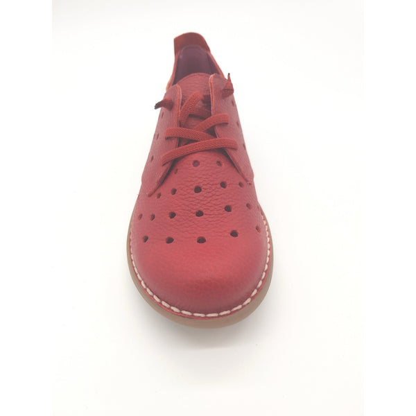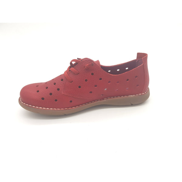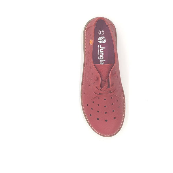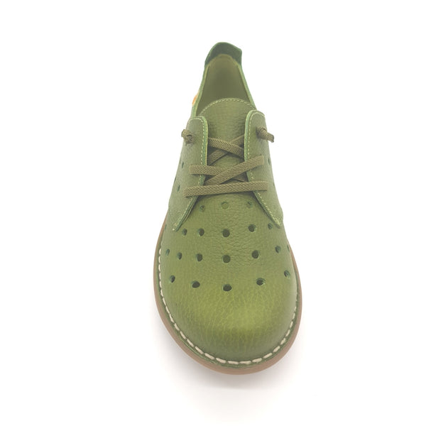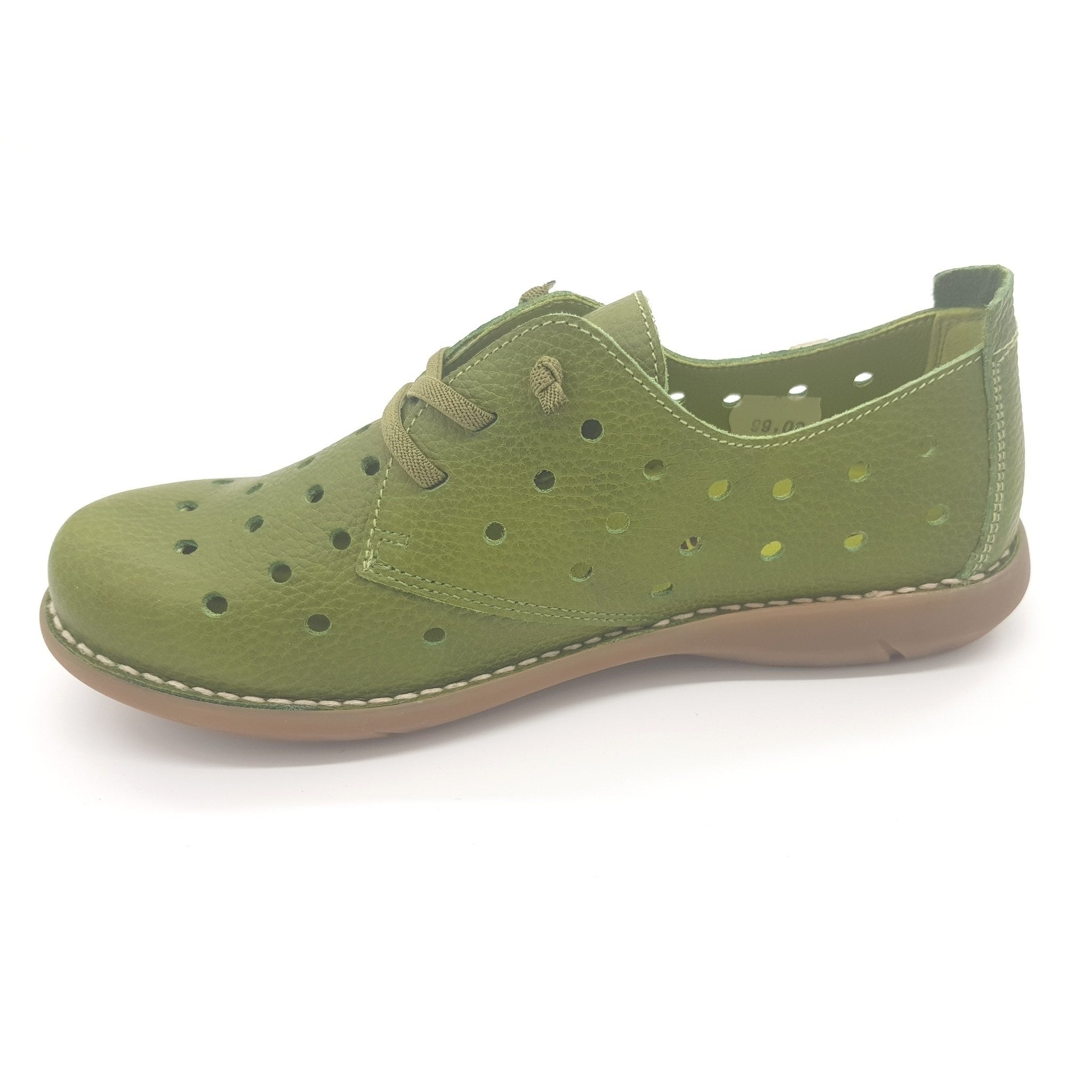 la foratura della tomaia è divertente e migliora la traspirabilità di questo derby cittadino, il fondo in gomma è morbido e piacevole, il plantare è estraibile e consente l’utilizzo di questa ballerina con plantari personalizzati, purchè sottili.