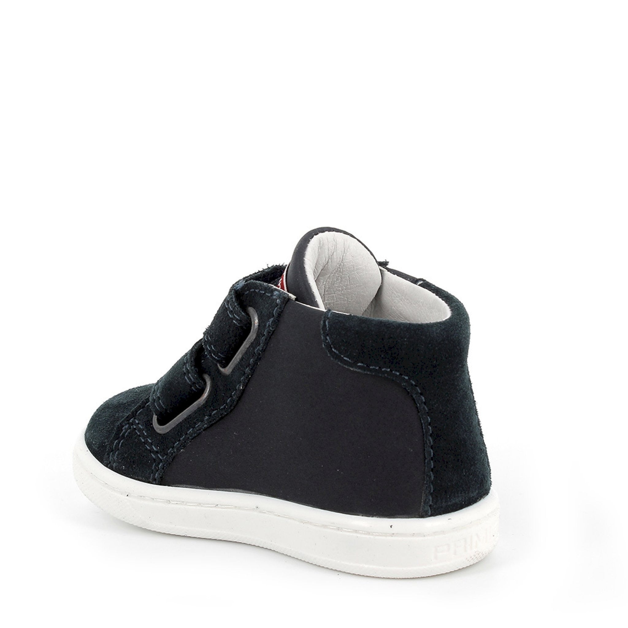 Scarpa pelle scamosciata 2 velcri numerata: 18 - 26 materiale: scamosciato/pelle sintetica fodera: pelle cromo free scarpe primi passi: si sottopiede estraibile: si chiusura: bivelcro tipologia: sneaker