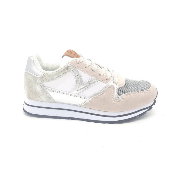 Sneakers allacciata in tessuto e riporti camoscio con fondo gomma alto due cm