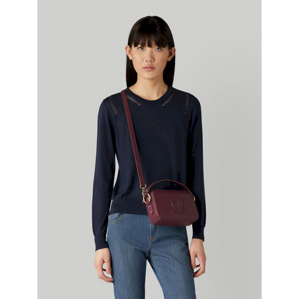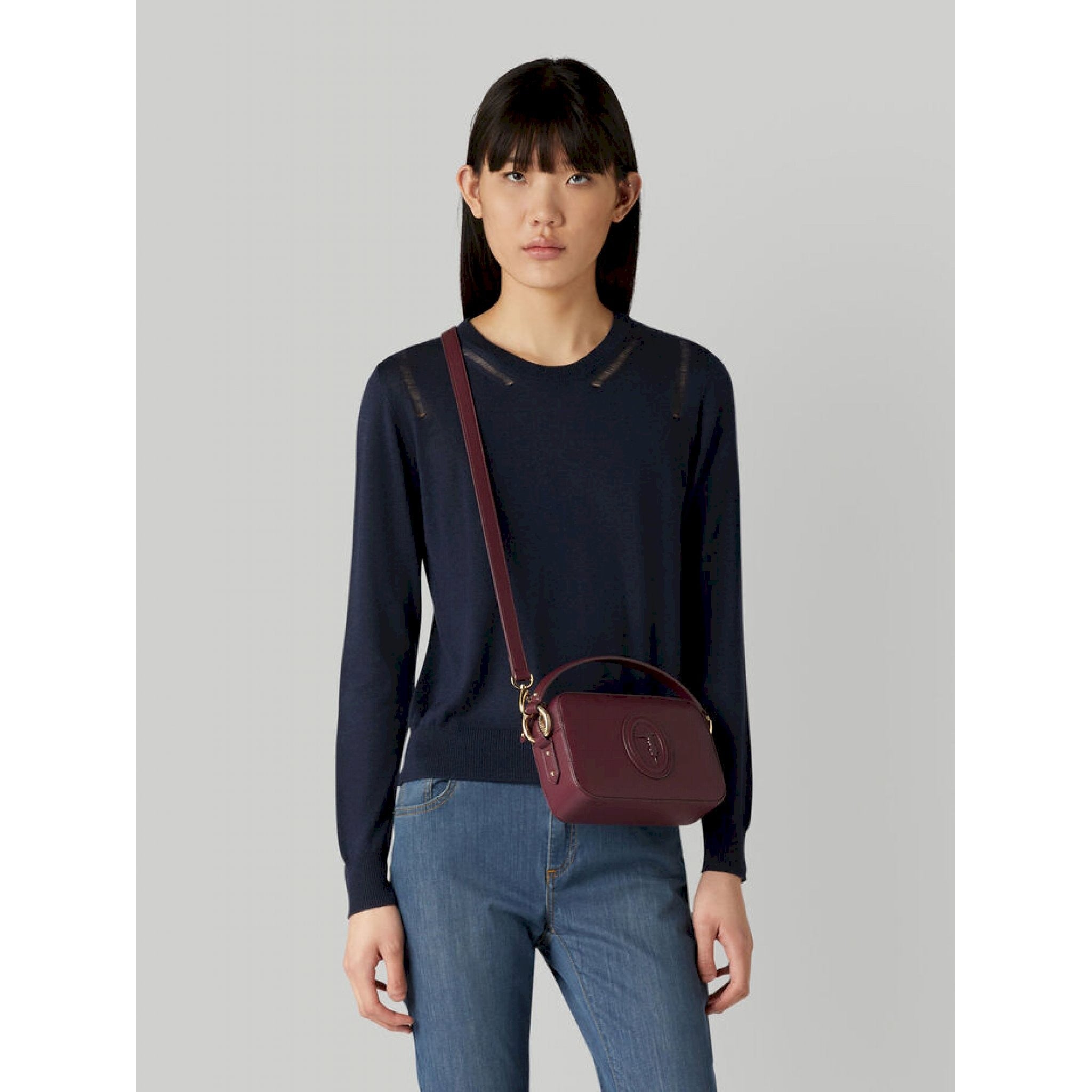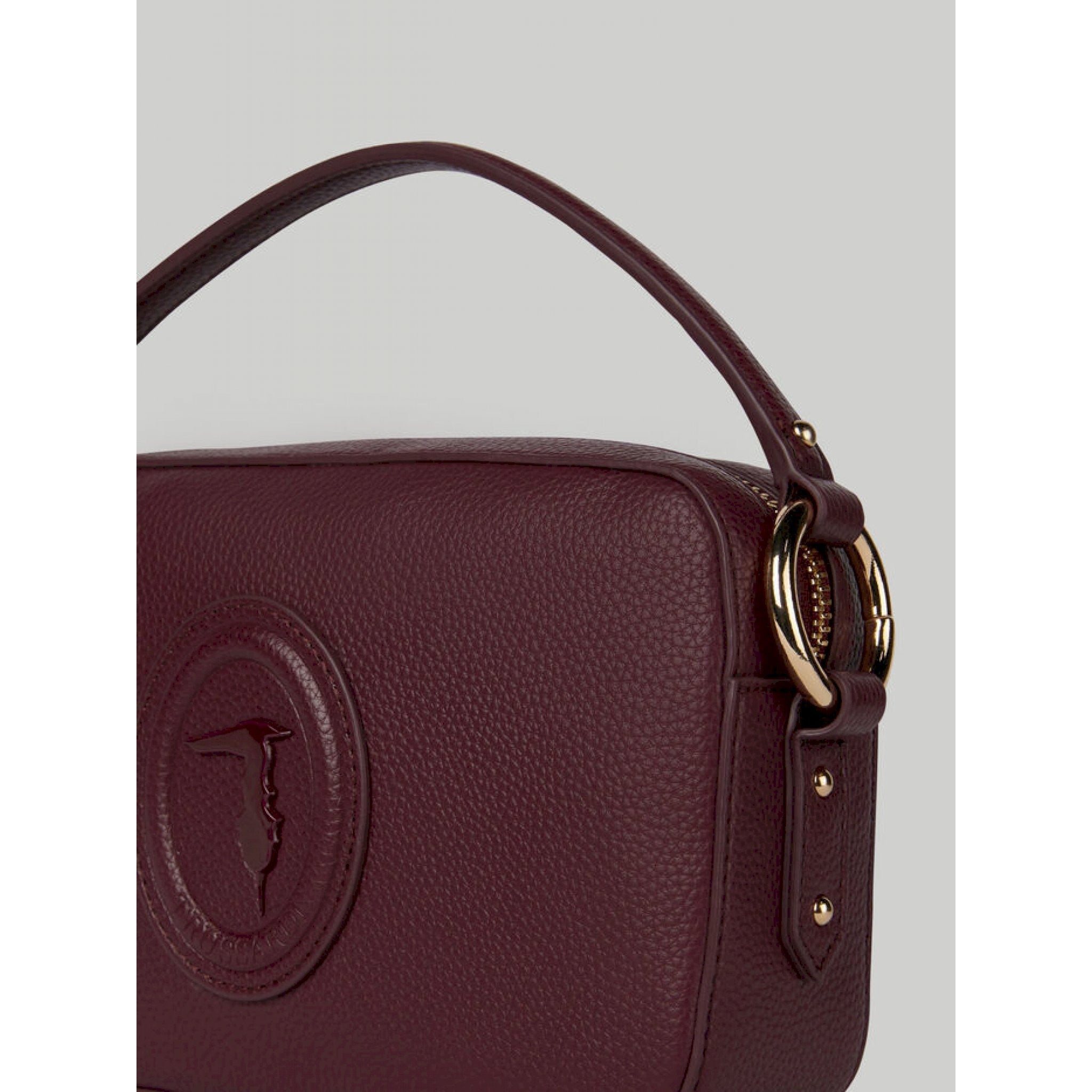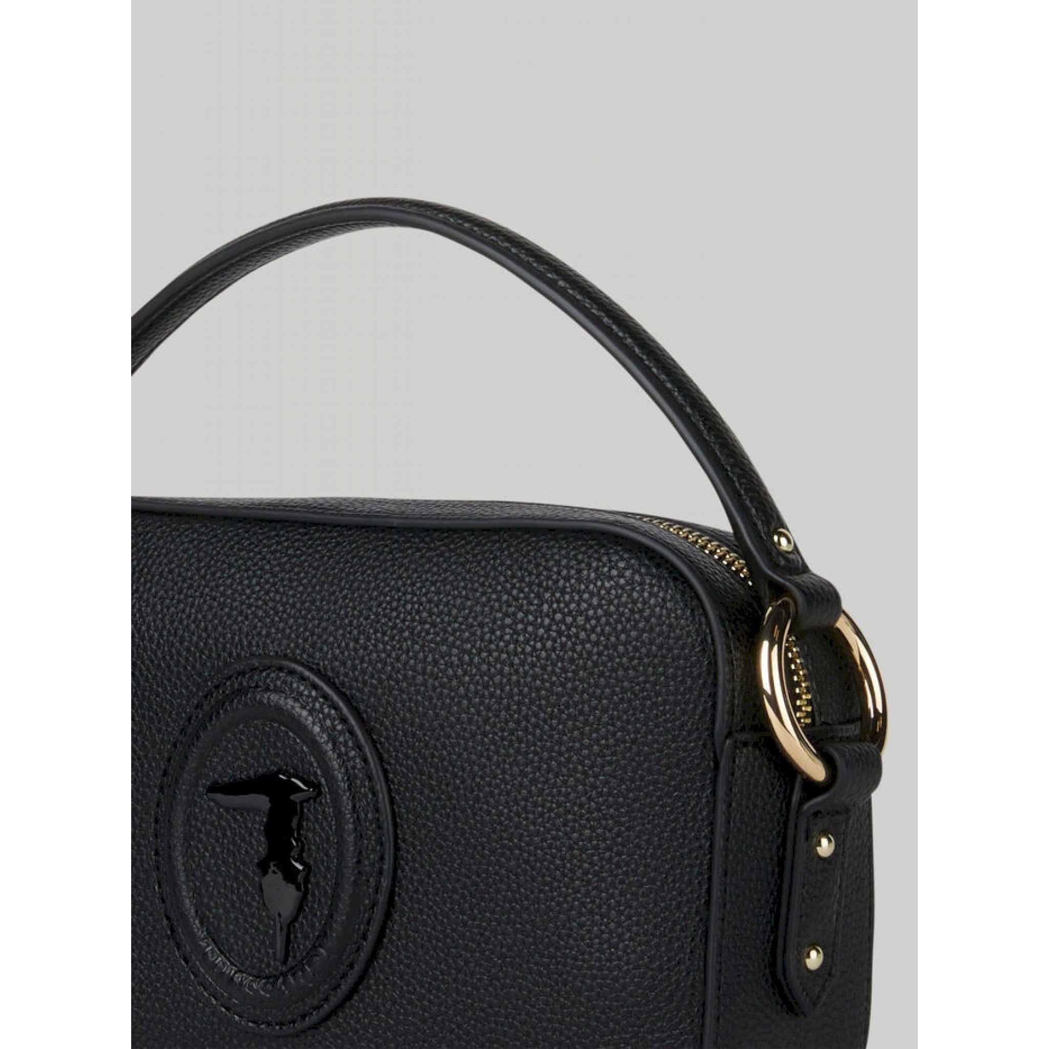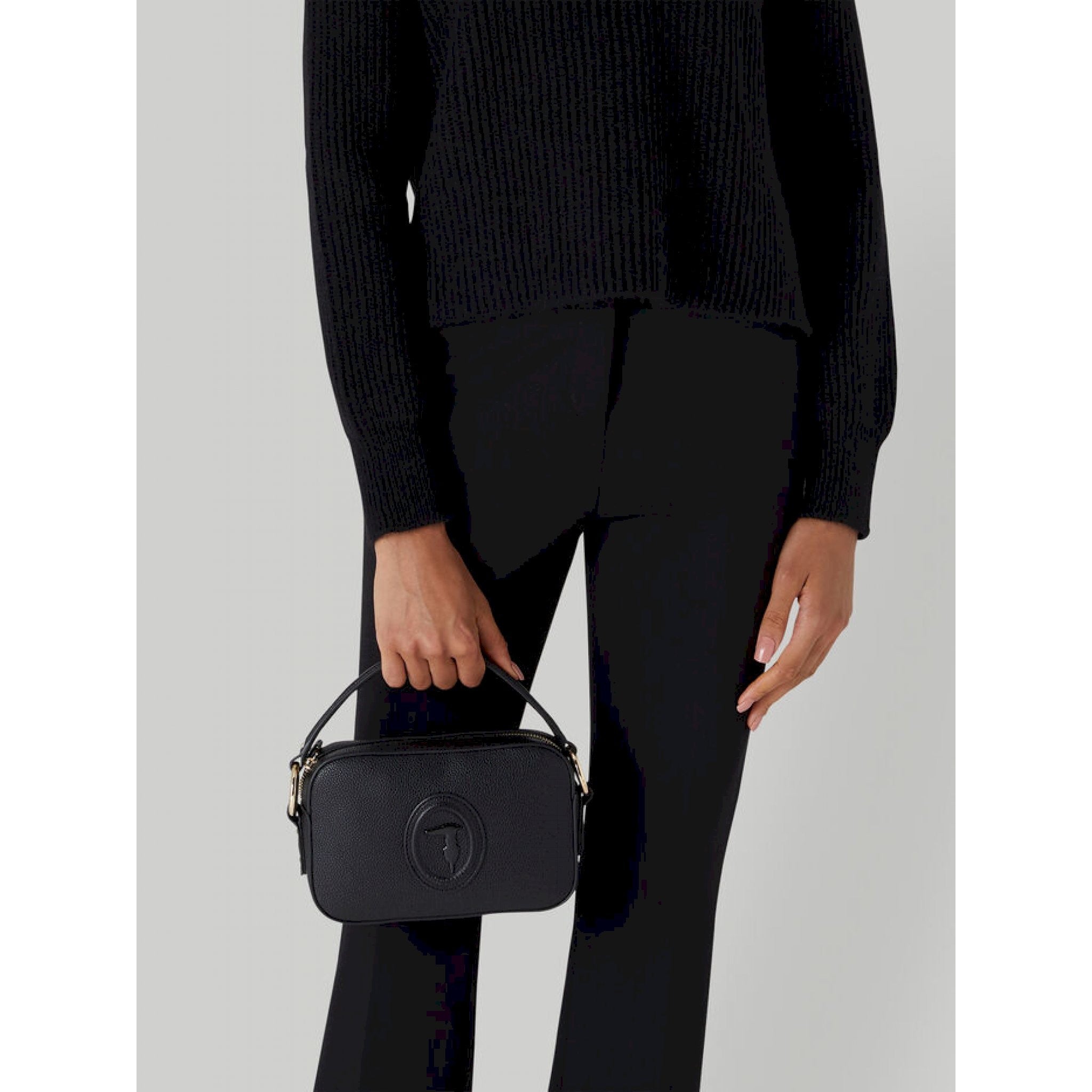 Camera bag lisbona realizzata in similpelle, dalla caratteristica texture a stampa cervo, con manico singolo. l'attitudine elegante del modello è sottolineata dal maxi patch frontale, con logo monogram trussardi a rilievo, nelle stesse tonalità. un modello versatile da indossare anche cross-body grazie alla tracolla lunga rimovibile. chiusura con zip. dimensioni : profondità 6 cm, larghezza 21 cm, altezza 13 cm