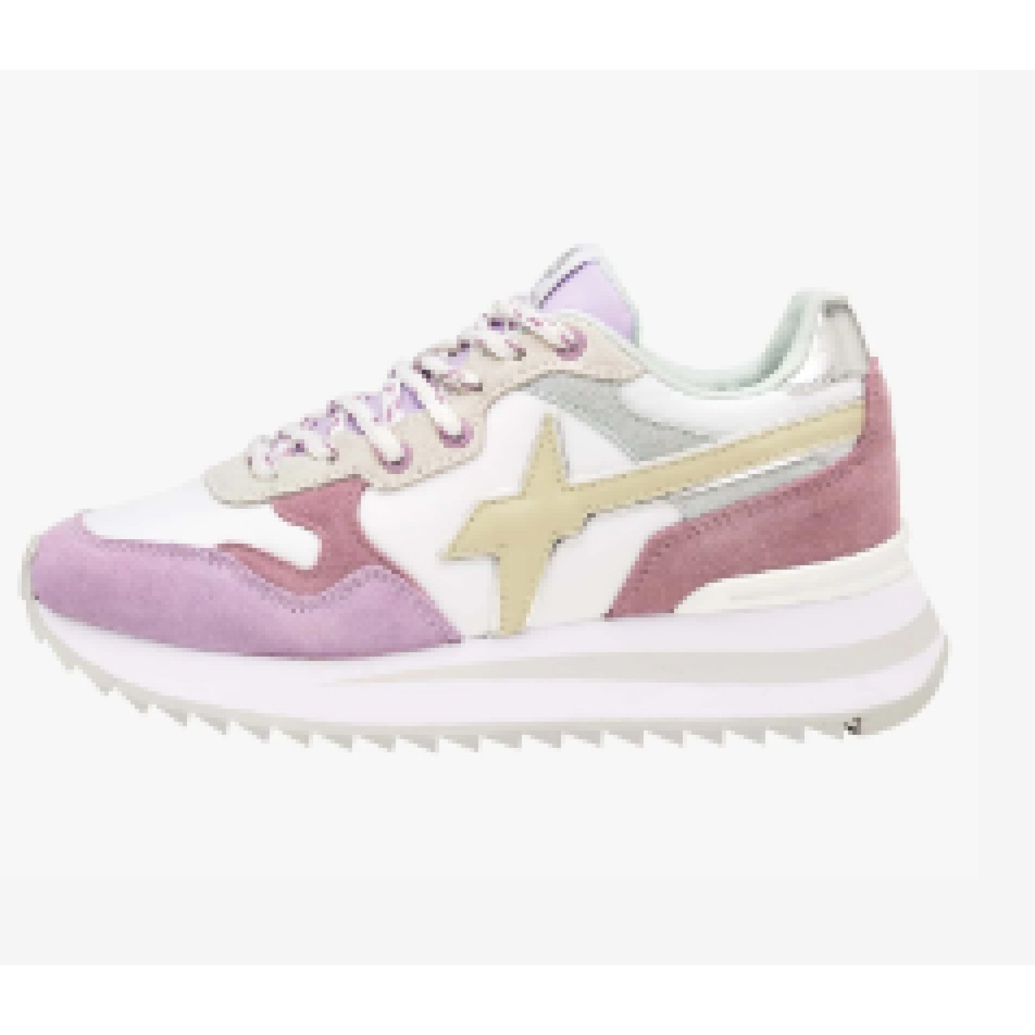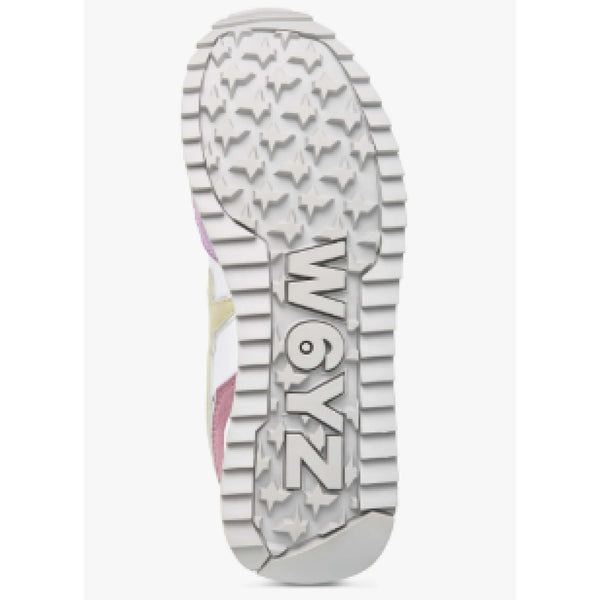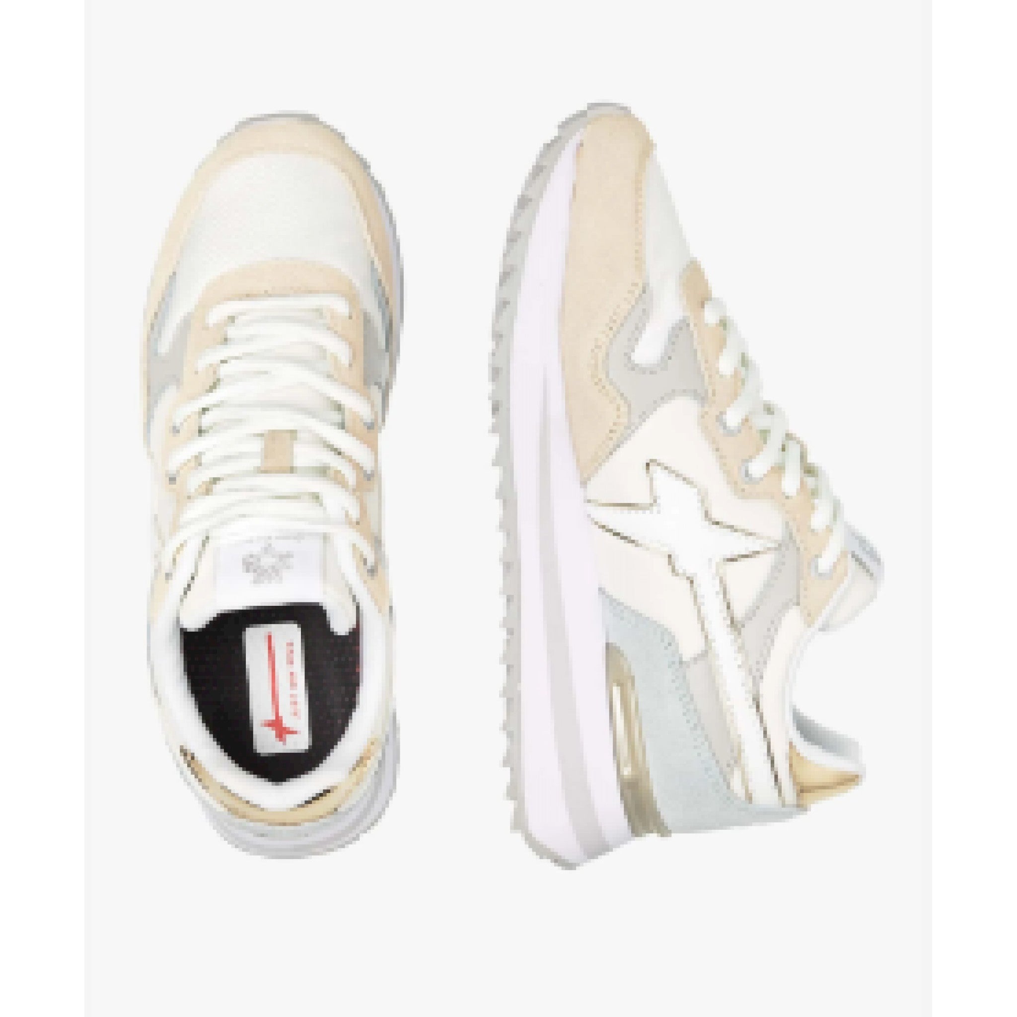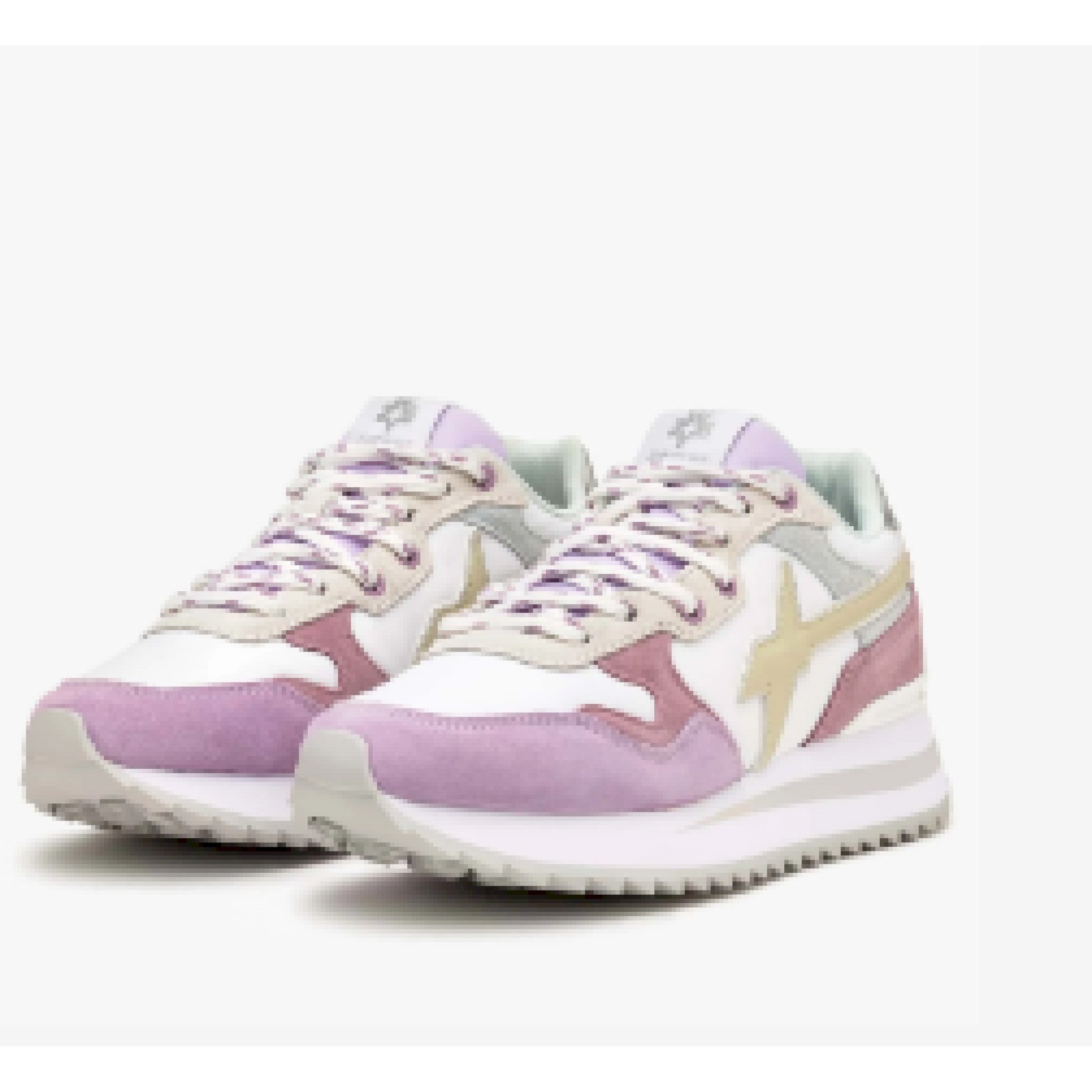 dinamica e cool, la sneaker metropolitana si accende del bagliore dorato della pelle a specchio, nei dettagli laterali e nel topponcino. la tomaia in tessuto tecnico e suede offre linee sportive e grintose, completate da logo laterale e suola in gomma ultraleggera con spoiler in gomma sotto il tallone. fondo effetto plateau, con battistrada personalizzato.