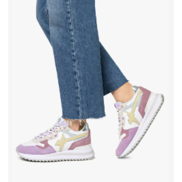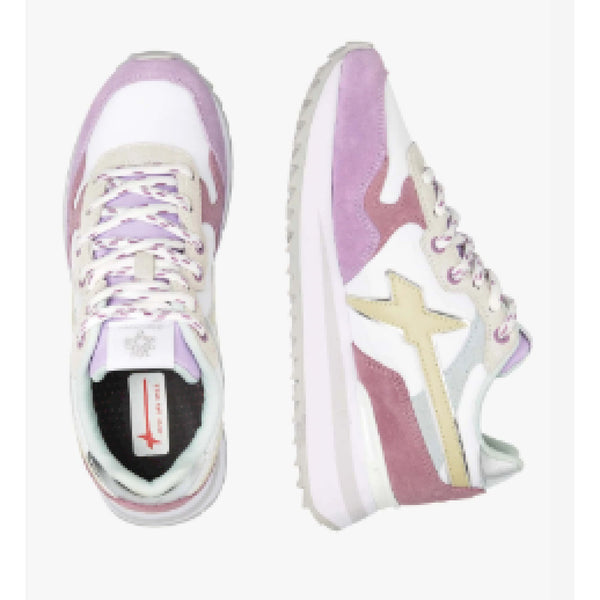 Sneaker in tessuto tecnico e suede, con spoiler sotto il tallone e dettagli a specchio. suola in gomma ultra leggera con logo laterale e battistrada personalizzato.
