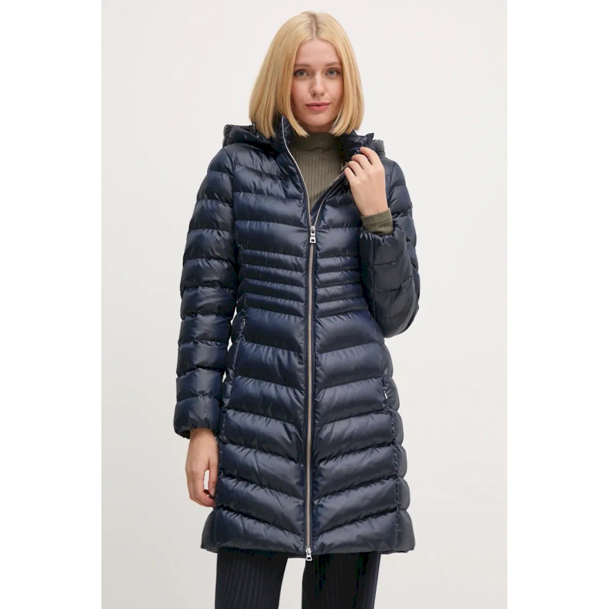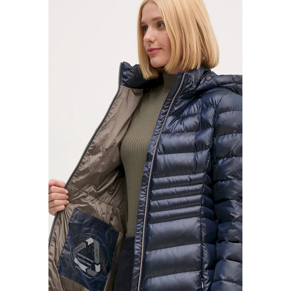 Giubbotto corto donna con cappuccio staccabile, ideale anche nei mesi più freddi. proposto in versione nera, zosma è un modello quotidiano, dalla silhouette femminile che enfatizza il punto vita. casual ma raffinato, è realizzato in raso brillante, con imbottitura in calda ovatta riciclata ecologicwarm.